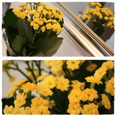 Kaipasin sateiseen syksyyn jotain piristävää. Piipahdin kukka- ja kangaskaupassa töistä tullessani ja nyt eteisen pöydällä ilahduttaa raikkaan keltainen tulilatva. Kangaskaupasta tarttui mukaan myös jotain keltaista olohuoneeseen.